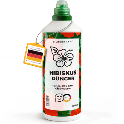 Imaginez : votre hibiscus est en pleine floraison – de grandes fleurs en forme d'entonnoir aux couleurs éclatantes s'épanouissent chaque jour. La plante est florissante, pousse vigoureusement et rayonne d'une touche tropicale. C'est précisément ce que permet l'engrais pour hibiscus Silberkraft : un engrais liquide hautement concentré, spécialement formulé pour répondre aux besoins uniques des hibiscus. L'hibiscus est l'une des plus belles plantes tropicales. L'hibiscus d'intérieur (Hibiscus rosa-sinensis) enchante par ses fleurs énormes qui peuvent atteindre 20 cm de diamètre. L'hibiscus de jardin rustique (Hibiscus syriacus) transforme le jardin en un paradis fleuri. Cependant, ces deux espèces sont gourmandes en nutriments : elles en ont besoin de beaucoup pour produire leurs magnifiques fleurs. C'est là que notre engrais pour hibiscus intervient : il fournit tous les nutriments essentiels sous une forme immédiatement assimilable, assurant ainsi une nutrition optimale de votre hibiscus tout au long de la saison.
